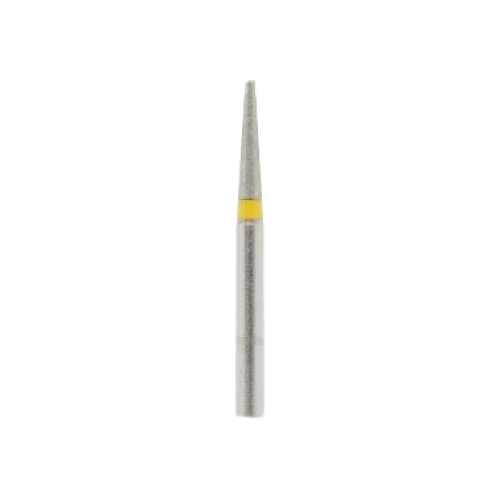 Алмазный абразив бора TF-21EF (Mani) сверхмелкой дисперсности от 20 до 30 мкм позволяет аккуратно обрабатывать любую поверхность. Хвостовик, маркированный желтой полосой, надежно закрепляется в турбинном наконечнике, не вибрируя при работе.